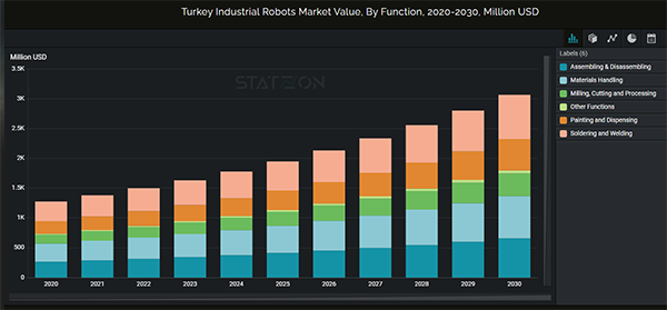 According to Turkey’s Industrial Automation Association (ENOSAD), the country’s leading manufacturing organization, the industrial automation market in Turkey was valued at $1.6 billion in 2020, with an annual growth rate of approximately 10 percent. The market is expected to reach $2.5 billion by 2025.