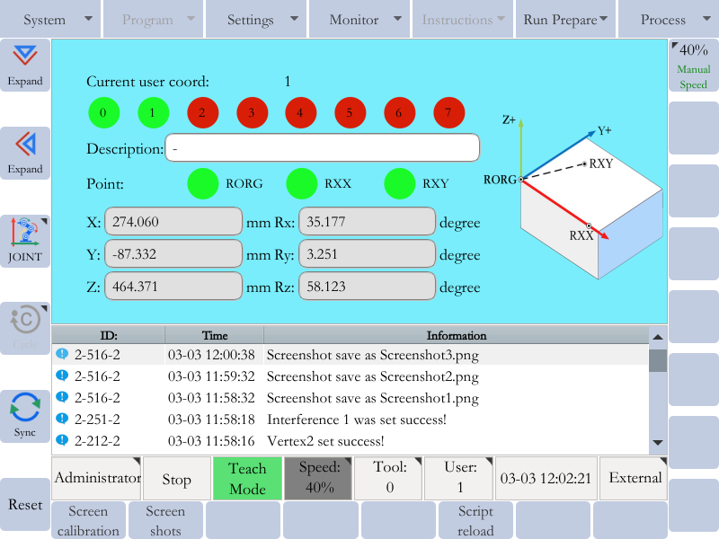 Elite robot also supports customized user coordinate system, which can be established through three-point teaching (see the figure below)