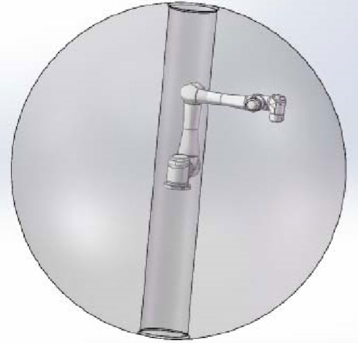 The 6 joints of the Elite robot have the ability to rotate within ± 360 °, so the working space is a complete spherical space within the working range of the robot (see the figure below); but pay attention to the following points:The 6 joints of the Elite robot have the ability to rotate within ± 360 °, so the working space is a complete spherical space within the working range of the robot (see the figure below); but pay attention to the following points: