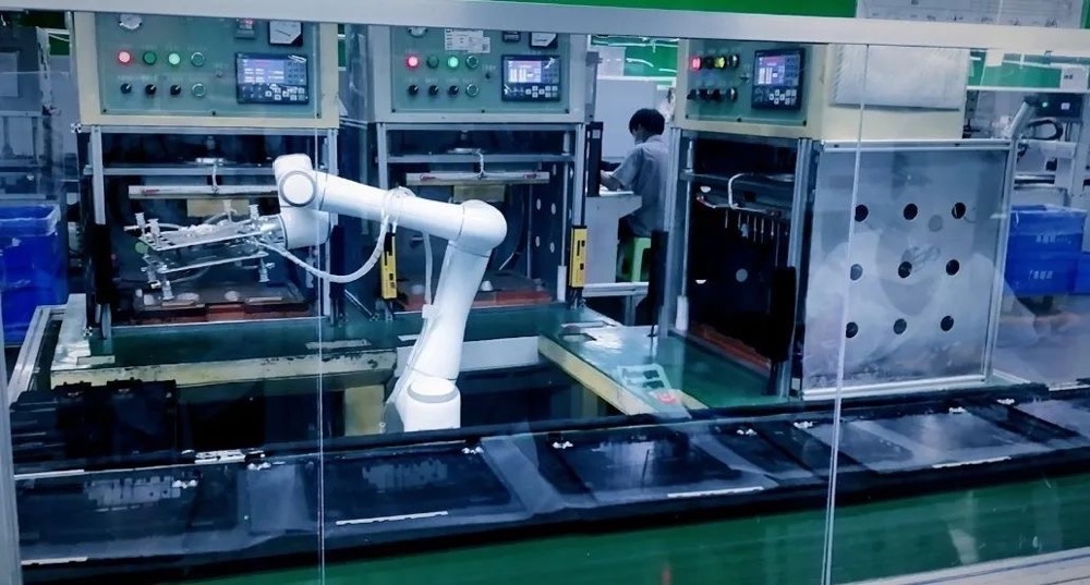 The collaborative robot introduced on this production line is mainly engaged in the processing and assembly of the laptop plastic case. The procedures are as follows:1. Positioning of laptop plastic case gluer2. Putting the metal parts in the gluing position3. The robotic arm taking the laptop plastic and sending it to No. 1 or No. 2 hot melt machine4. The metal binds to the plastic shell at a temperature of 80 degrees5. The robotic arm taking the processed laptop plastic from No. 1 or No. 2 hot melt machine6. The robotic arm putting the materials and parts into No. 3 machine, pressing and cooling them for shaping7. The robotic arm taking the finished part down to the assembly line