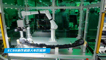 These constraints did not baffle the collaborative robot. Instead, the advantages of these robots are fully realized. ELITE EC66(6kg) collaborative robot is installed on a desktop, and the integrated camera takes photos and inspects the car lights according to the given trajectory. Collaborative robot programming is very simple, can support drag-and-record instruction, or teach pendant interactive programming, so it has a inherent advantage for applications that require a large number of points and complicated trajectories. In addition, ELITE's 6-joint cooperative robot can achieve ±360° rotation for every single joint. Taking the 6kg cooperative robot as an example, the robot can work in a spherical space with a radius of 914mm, and each inspection surface of the workpiece can be flexibly reached. Engineers do not need to worry about how to avoid the unreachable angles of robot when programming.